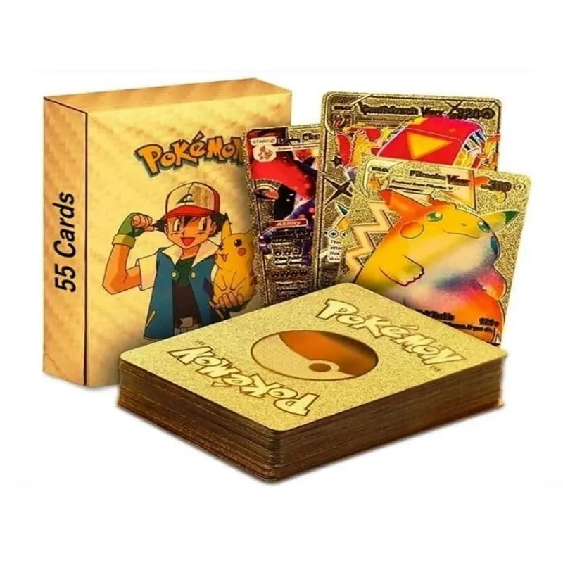 AL ATASH 55 PCS Pokemon Cards, Gold Foil Card, Assorted Cards Deck Box - V Series Cards (Gold)